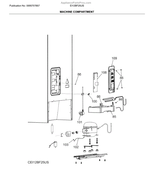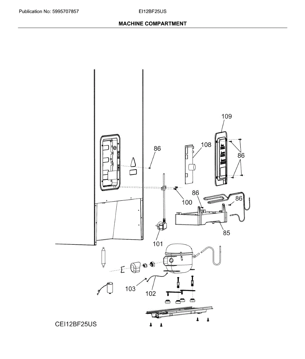 Parts for Electrolux EI12BF25US: Machine Compartment Parts