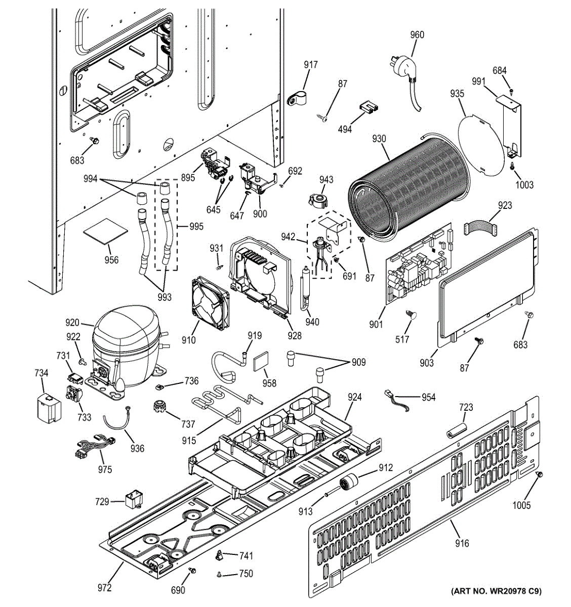 Parts for Ge DFE29JSDDSS: Machine Compartment Parts