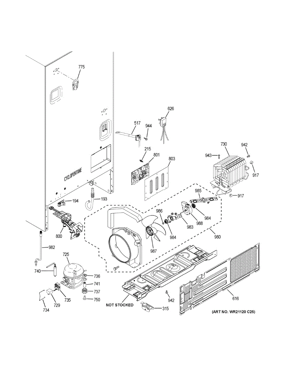 Cardboard or metal cover that closes the machine compartment opening on your refrigerator back panel. Replace if cracked, missing, or water-damaged.