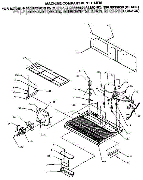Parts for Kenmore 596.9535680 (5969535680, 596 9535680): Machine Compartment Parts