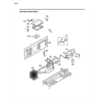 The Compressor is an OEM part for LG refrigerators. As the primary component that circulates refrigerant to chill the refrigerator and freezer compartments, it is crucial for proper cooling operation. The compressor works with the condenser fan and evaporator coil to regulate temperatures inside the refrigerator.