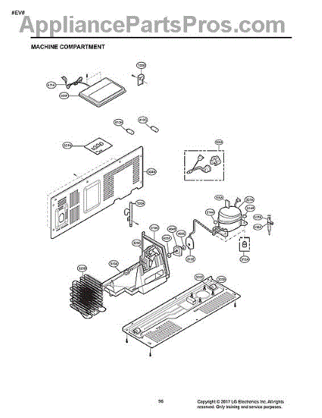 The Compressor is an OEM part for LG refrigerators. As the primary component that circulates refrigerant to chill the refrigerator and freezer compartments, it is crucial for proper cooling operation. The compressor works with the condenser fan and evaporator coil to regulate temperatures inside the refrigerator.