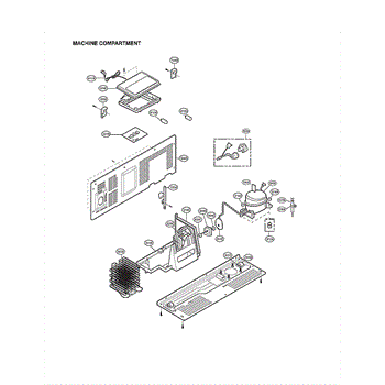 The Compressor is an OEM part for LG refrigerators. As the primary component that circulates refrigerant to chill the refrigerator and freezer compartments, it is crucial for proper cooling operation. The compressor works with the condenser fan and evaporator coil to regulate temperatures inside the refrigerator.