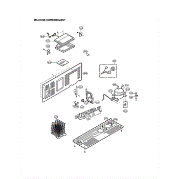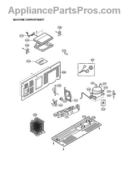 The Compressor is an OEM part for LG refrigerators. As the primary component that circulates refrigerant to chill the refrigerator and freezer compartments, it is crucial for proper cooling operation. The compressor works with the condenser fan and evaporator coil to regulate temperatures inside the refrigerator.