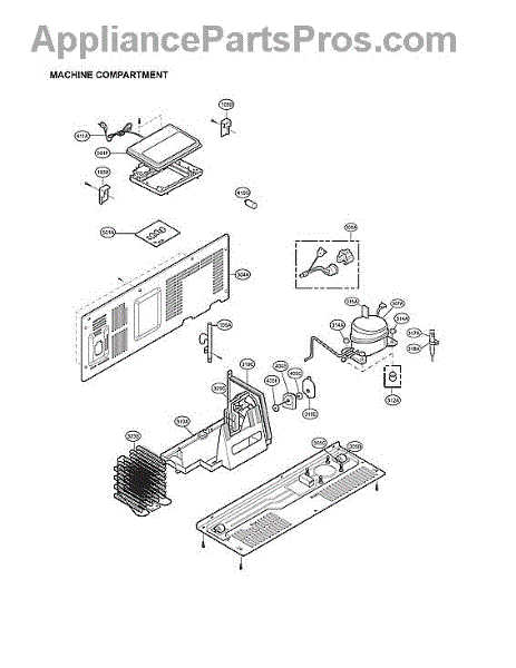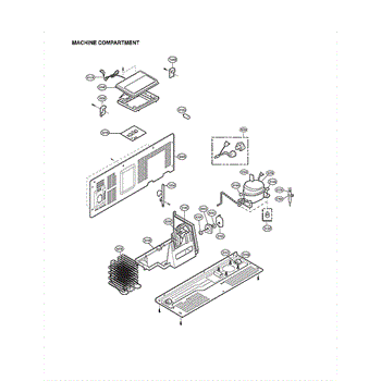 The Compressor is an OEM part for LG refrigerators. As the primary component that circulates refrigerant to chill the refrigerator and freezer compartments, it is crucial for proper cooling operation. The compressor works with the condenser fan and evaporator coil to regulate temperatures inside the refrigerator.