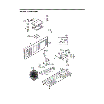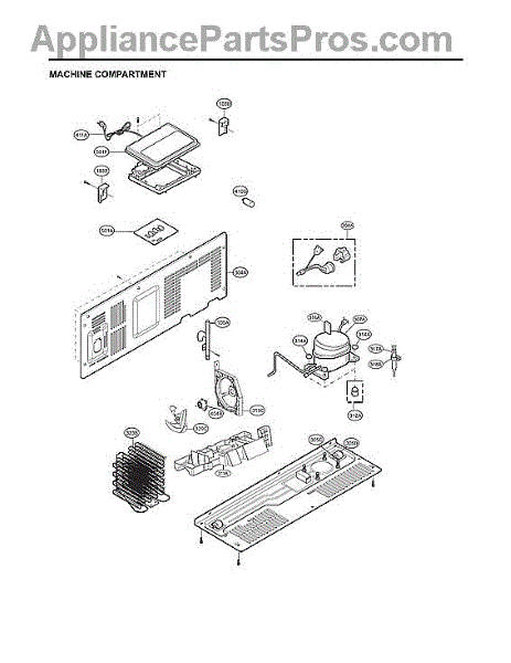The Compressor is an OEM part for LG refrigerators. As the primary component that circulates refrigerant to chill the refrigerator and freezer compartments, it is crucial for proper cooling operation. The compressor works with the condenser fan and evaporator coil to regulate temperatures inside the refrigerator.