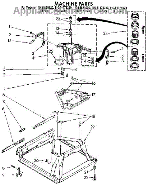 Base for washers. Supports the entire washer assembly and houses internal components. Replace if cracked, warped, or damaged from drops or impacts.