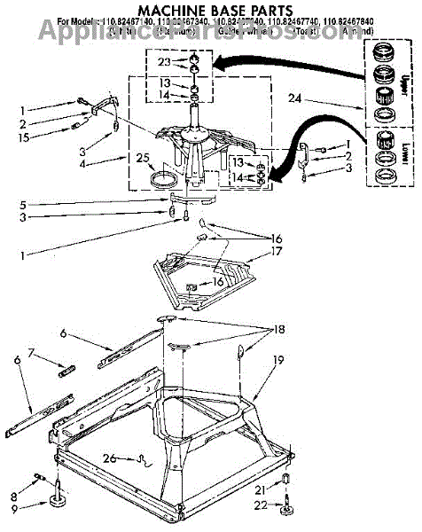 Parts for Kenmore 110.82467340 (11082467340, 110 82467340): Machine Parts