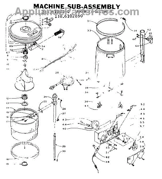 Parts for Kenmore 110.6102850 (1106102850, 110 6102850): Machine Sub-Assembly Parts