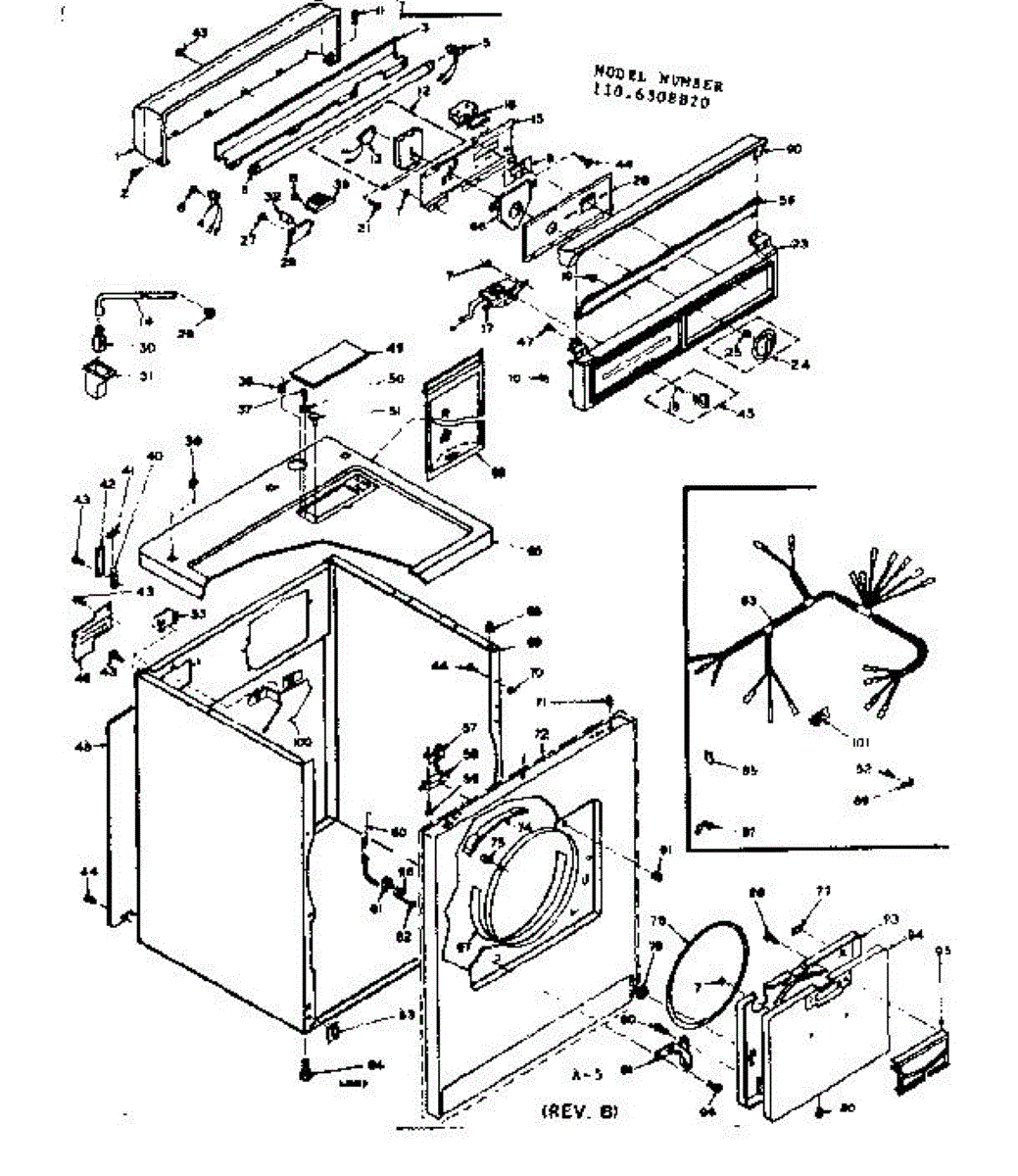 Supports and pivots the hinged dryer top panel for service access. Replace if cracked, broken, or causing wobble, scraping, or alignment gaps.