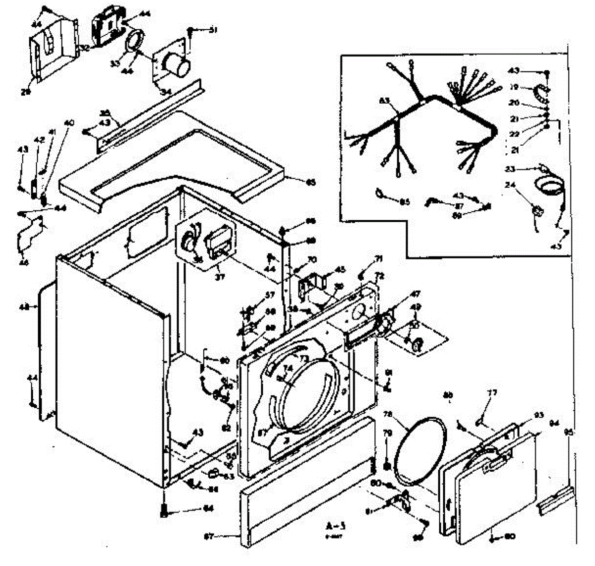 Supports and pivots the hinged dryer top panel for service access. Replace if cracked, broken, or causing wobble, scraping, or alignment gaps.