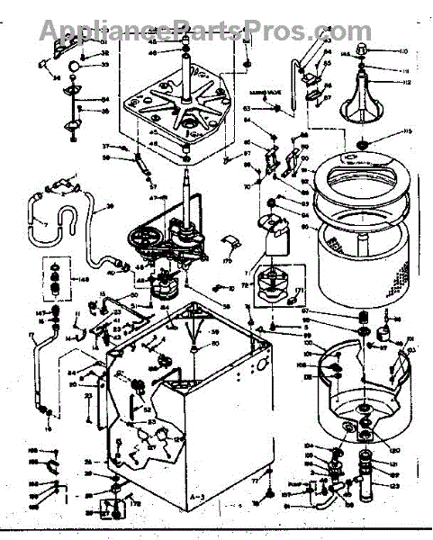 Seals the center post/agitator shaft to prevent water leaks during wash cycles. Replace if you notice pooling water under your washer. Confirm fit with your model.