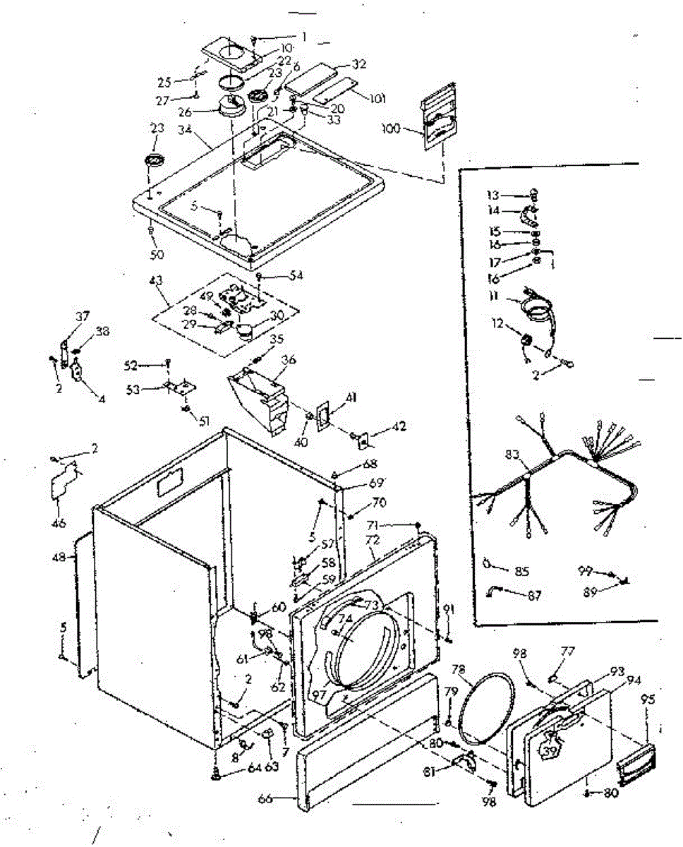 Supports and pivots the hinged dryer top panel for service access. Replace if cracked, broken, or causing wobble, scraping, or alignment gaps.
