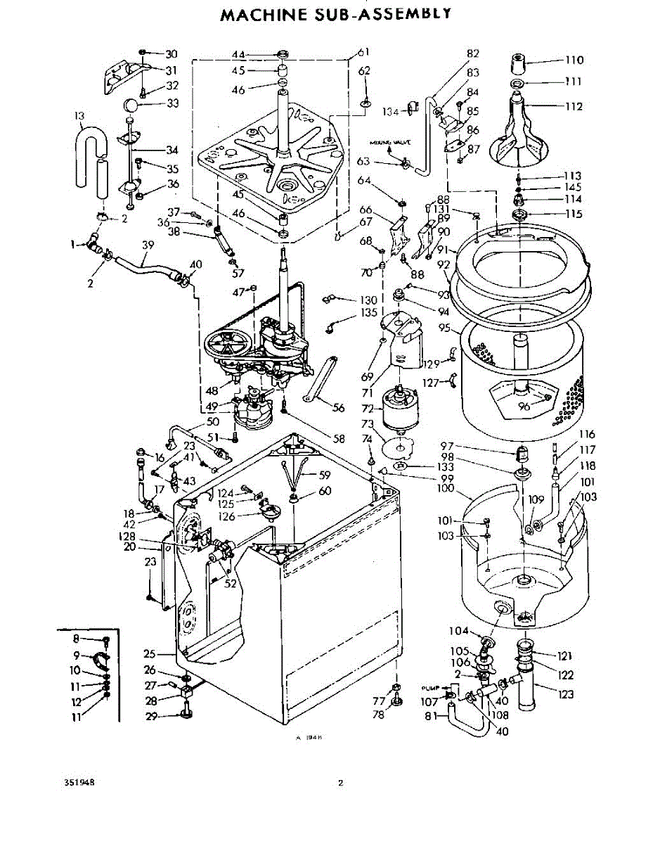 Parts for Whirlpool LSA3340W0: 02 - Machine Sub-Assembly Parts