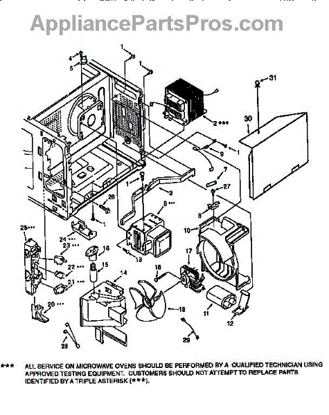 Parts for Kenmore 565.68490790 (56568490790, 565 68490790): Magnetron And Air Flow Parts
