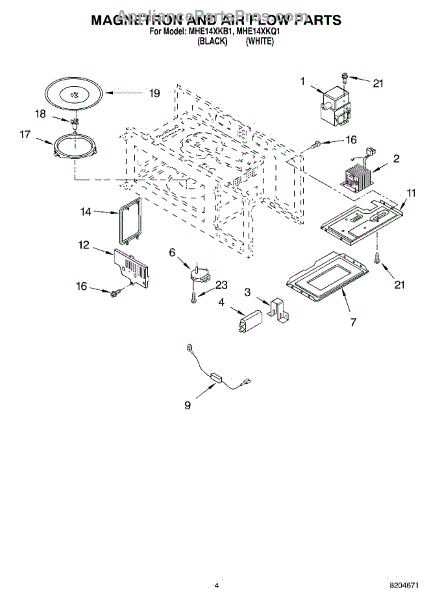 This magnetron generates the microwave energy that heats food in a microwave oven. Replacing a failed magnetron restores normal cooking power and stops weak or no-heat performance. What it does: