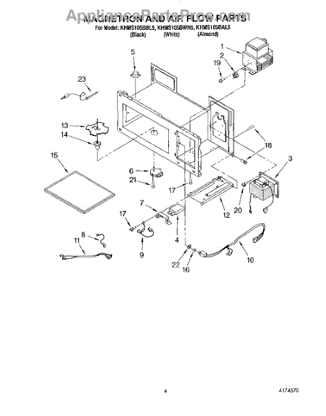 Parts for Kitchenaid KHMS105BAL5: 04 - Magnetron And Air Flow Parts