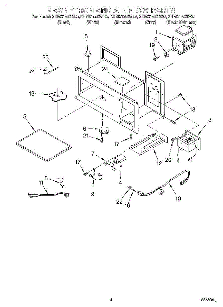 Mounting screw for microwaves. Secures door panels, handles, and internal components. Replace if stripped, missing, or damaged during repairs.
