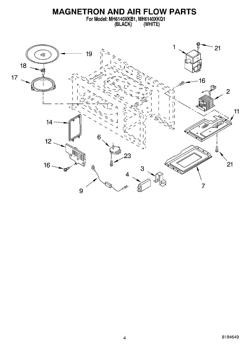 This magnetron generates the microwave energy that heats food in a microwave oven. Replacing a failed magnetron restores normal cooking power and stops weak or no-heat performance. What it does: