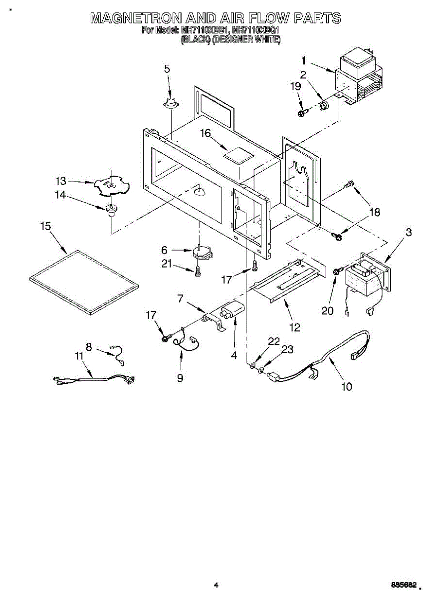 Parts for Whirlpool MH7110XBQ1: 04 - Magnetron And Air Flow Parts