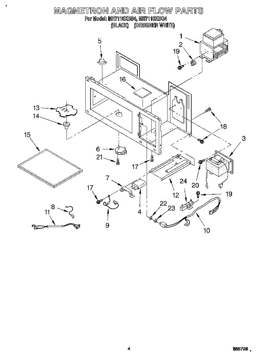 Parts for Whirlpool MH7110XBQ4: 04 - Magnetron And Air Flow Parts