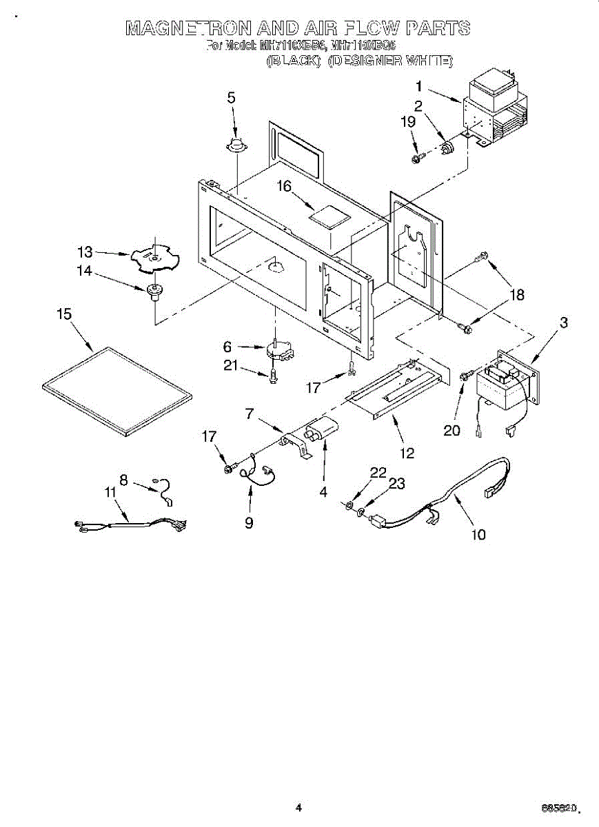 Parts for Whirlpool MH7110XBQ6: 04 - Magnetron And Air Flow Parts