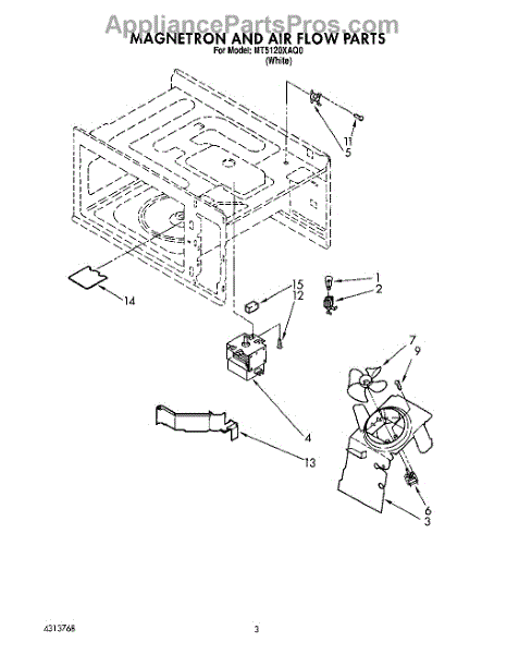 Parts for Whirlpool MT5120XAQ0: 02 - Magnetron And Air Flow Parts