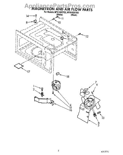 Parts for Whirlpool MT9160XYQ2: 02 - Magnetron And Air Flow Parts