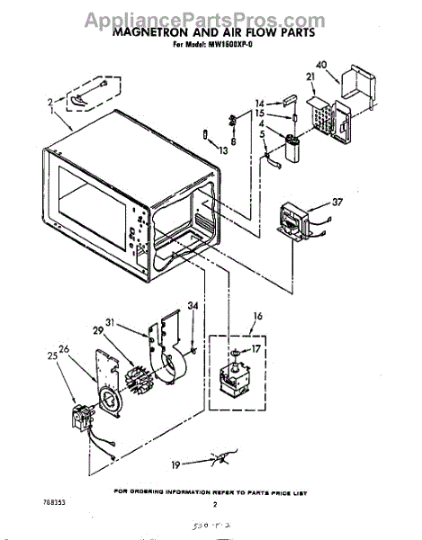 Parts for Whirlpool MW1500XP0: 02 - Magnetron And Air Flow Parts