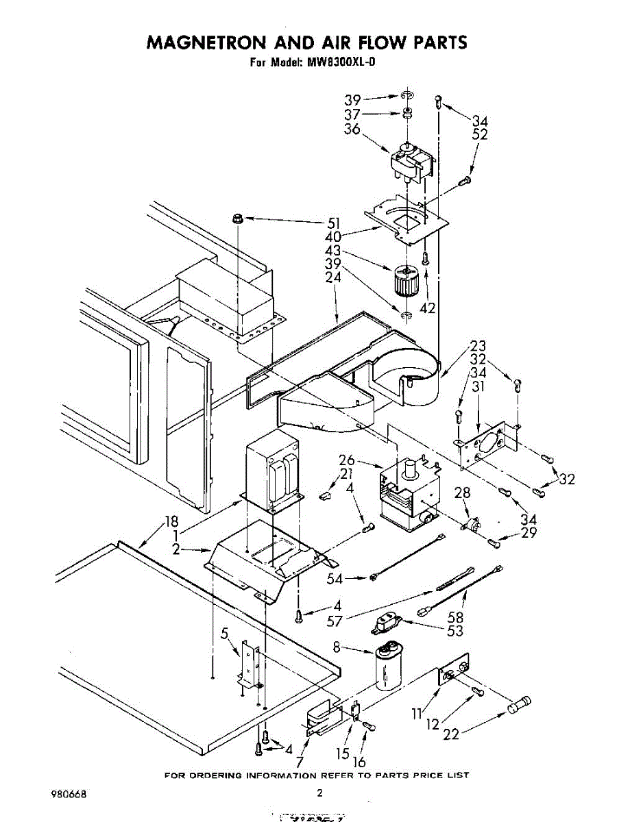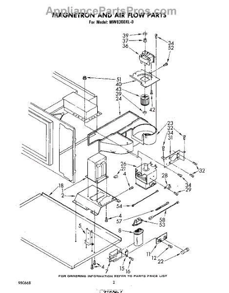 Parts for Whirlpool MW8300XL0: 02 - Magnetron And Air Flow Parts