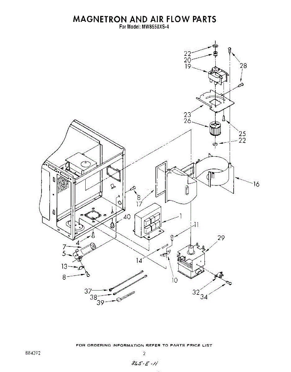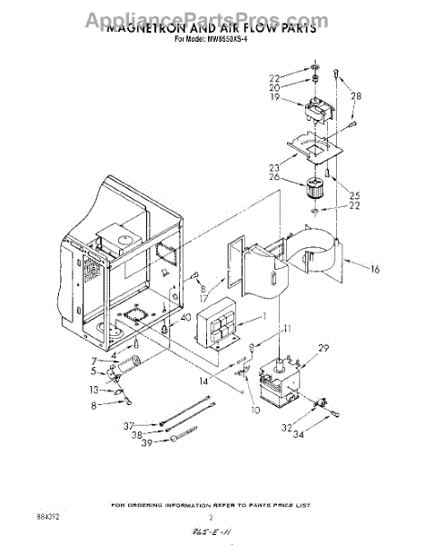 Parts for Whirlpool MW8550XS4: 02 - Magnetron And Air Flow Parts