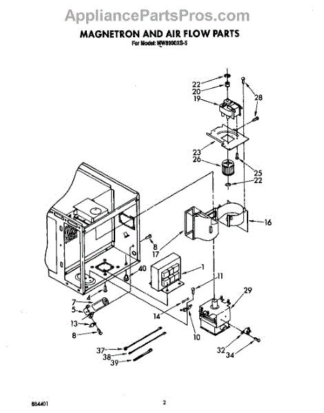 Parts for Whirlpool MW8900XS5: 02 - Magnetron And Air Flow Parts