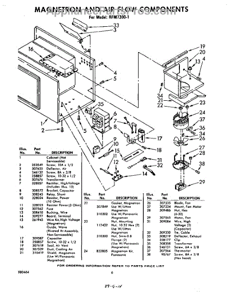 Parts for Whirlpool RFM73001: 06 - Magnetron And Air Flow Parts
