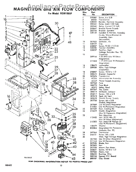 Parts for Whirlpool RGM1880P: 12 - Magnetron And Air Flow Parts