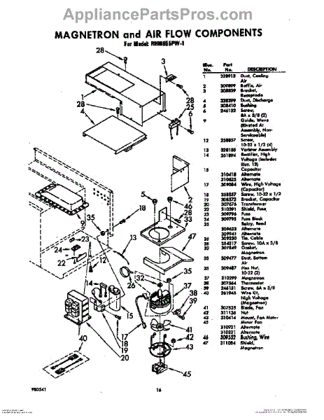 Parts for Whirlpool RHM955PW1: 16 - Magnetron And Air Flow Parts