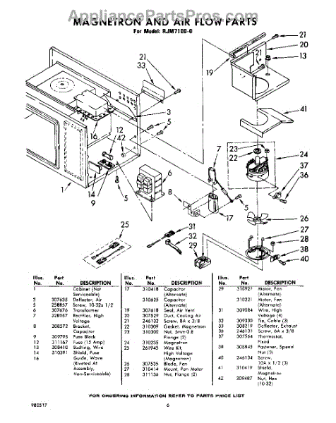 Parts for Whirlpool RJM71000: 06 - Magnetron And Air Flow Parts