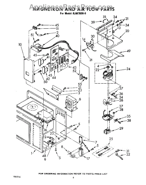 Parts for Whirlpool RJM78000: 06 - Magnetron And Air Flow Parts