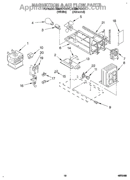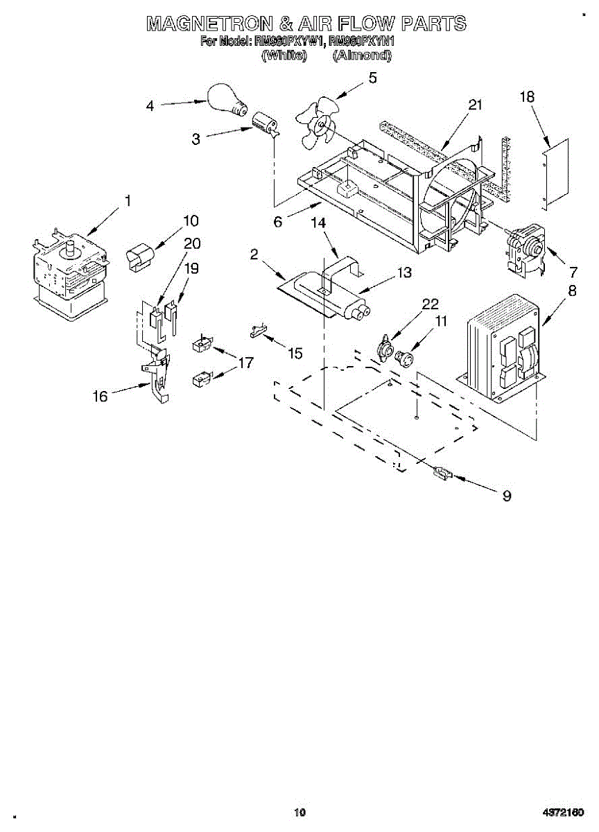 Parts for Whirlpool RM980PXYW1: 10 - Magnetron & Air Flow Parts