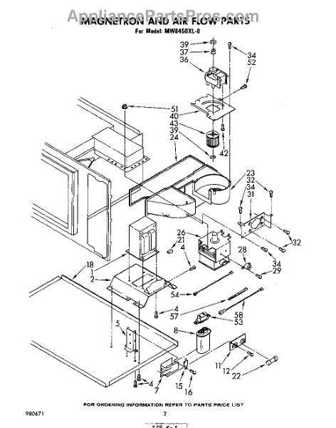 Parts for Whirlpool MW8450XL0: 02 - Magnetron And Airflow Parts