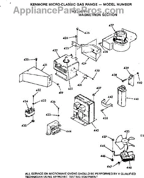Parts for Kenmore 103.7907915 (1037907915, 103 7907915): Magnetron Section Parts