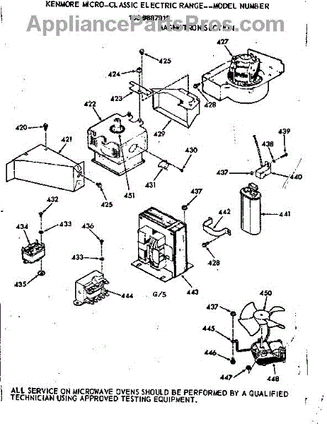 Parts for Kenmore 103.9887915 (1039887915, 103 9887915): Magnetron Section Parts