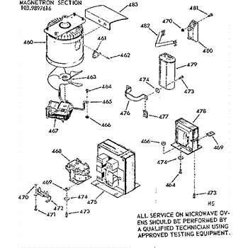 Parts for Kenmore 103.9897616 (1039897616, 103 9897616): Magnetron Section Parts