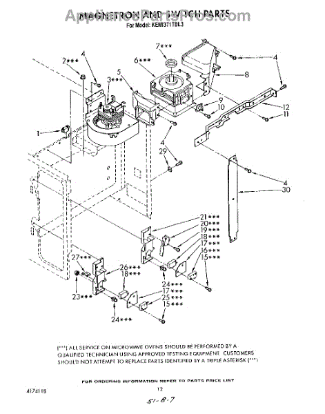 Parts for Kitchenaid KEMI371TBL3: 10 - Magnetron And Switch Parts