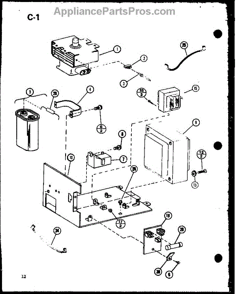 Parts for Amana RO-1010/P75992-2M: Magnetron / Transformer / Capacitor Parts