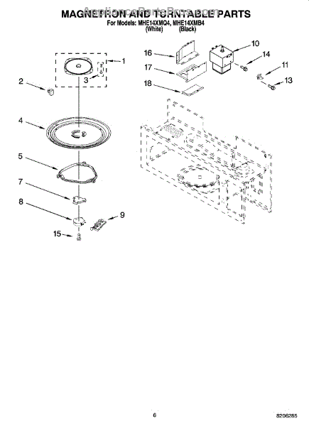 Parts for Roper MHE14XMQ4: 05 - Magnetron And Turntable Parts