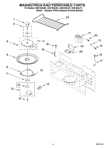 Parts for Whirlpool GH8155XJQ1: 05 - Magnetron And Turntable Parts