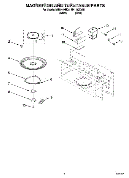 Parts for Whirlpool MH1140XMB1: 05 - Magnetron And Turntable Parts