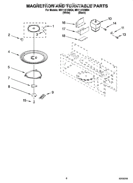 Parts for Whirlpool MH1141XMB4: 05 - Magnetron And Turntable Parts