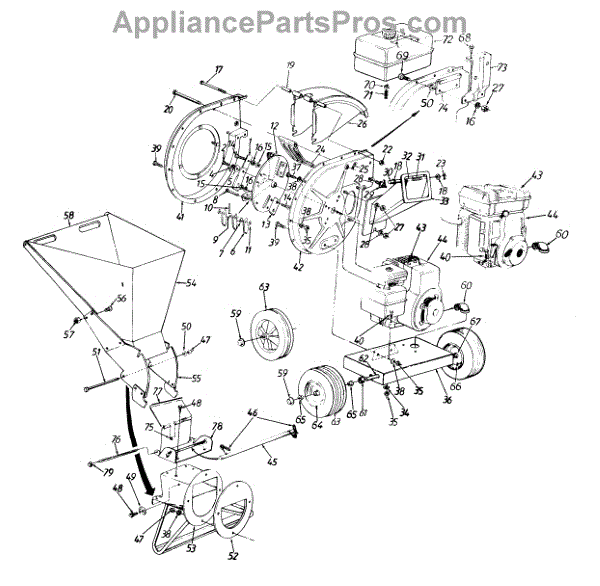 This is a chipper impeller assembly that can be used with a range of chippers and chipper-shredders. The impeller is the part of the chipper that rotates, and it is what allows for the chipping or shredding to take place. It will shred leaves, yard waste, and tree limbs. If there is an issue with the chipper impeller, it will reduce the efficiency of the machine. In some cases, it might not work at all. One of the signs that the impeller has problems is that it is turning slowly. It might also make a lot of noise.The impeller is a durable piece, but it does a lot of work. This means it is subject to wear and tear. Over time, it might become worn out or damaged, which will require a replacement. This replacement could be done by the owner. However, they need to remove the spark plug wire first and wear gloves to keep their hands safe.The chipper impeller assembly works for select machines from MTD, Troy-Bilt, Husky, and Yard Machines. This is a genuine OEM replacement part sourced from the manufacturer, and it is sold individually.