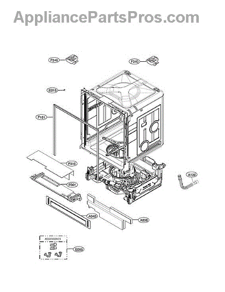 The LG Dishwasher Parts Assembly is an OEM component specifically designed for LG dishwashers. This comprehensive assembly includes many interior dishwasher components working together as a system.